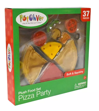 PopOhVer Pretend Plush Food Sets are crafted from all-natural materials and filled with sand for a realistic weight and feel, making them an ideal addition to your child's pretend kitchen. The Pizza Plush Food Set lets kids create mouthwatering pizzas with their favorite toppings.